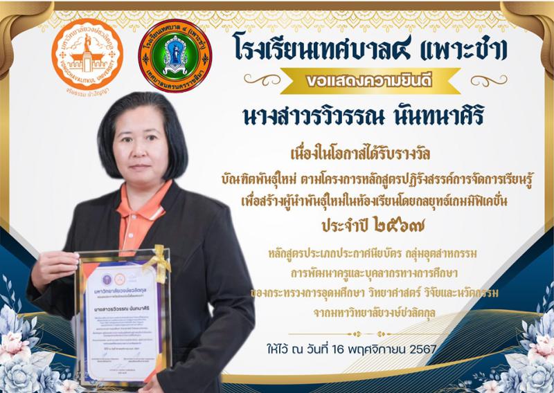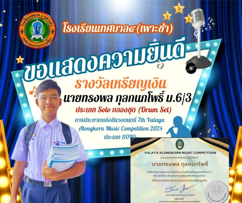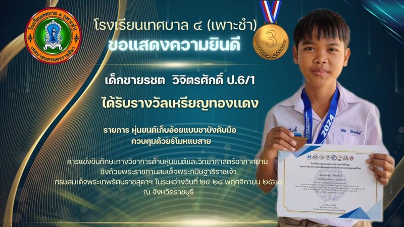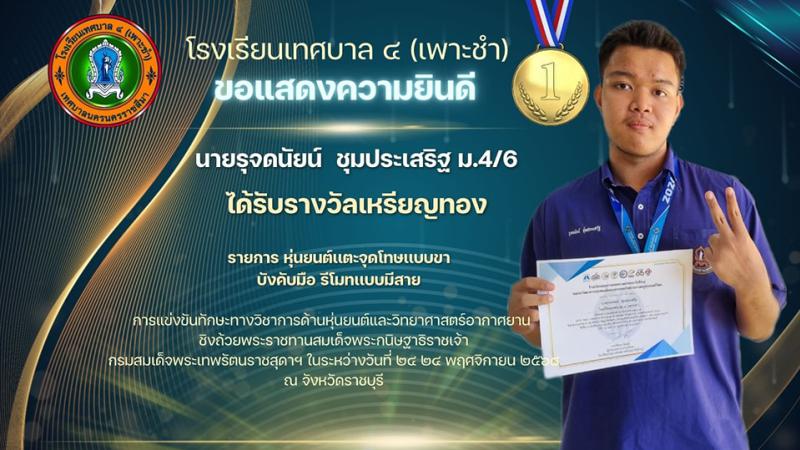 ได้รับ โล่รางวัล / เหรียญรางวัลเหรียญทอง ได้เป็นตัวแทนประเทศไทยเข้าร่วมการแข่งขัน International Rob..