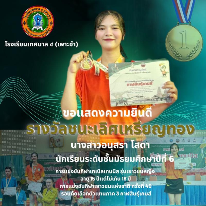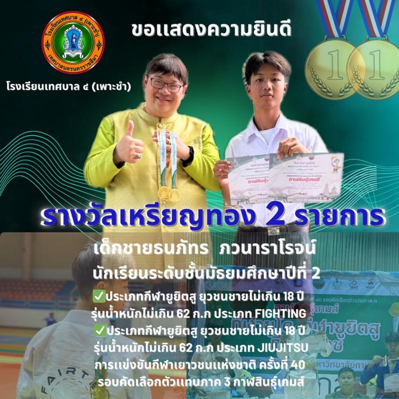 เด็กชายธนภัทร ภวนาราโรจน์ ประเภทกีฬายูยิตสู ยุวชนชายไม่เกิน 18 ปี รุ่นน้ำหนักไม่เกิน 62 ก.ก ประเภท ..