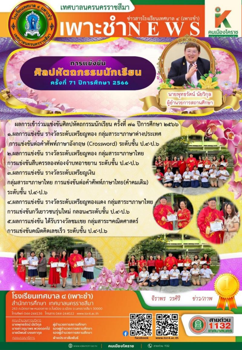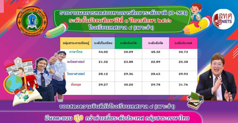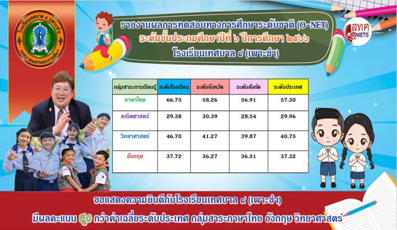 ขอเเสดงความยินดีกับโรงเรียนเทศบาล ๔(เพาะชำ) มีผลคะเเนนสูงกว่าค่าเฉลี่ยระดับประเทศ