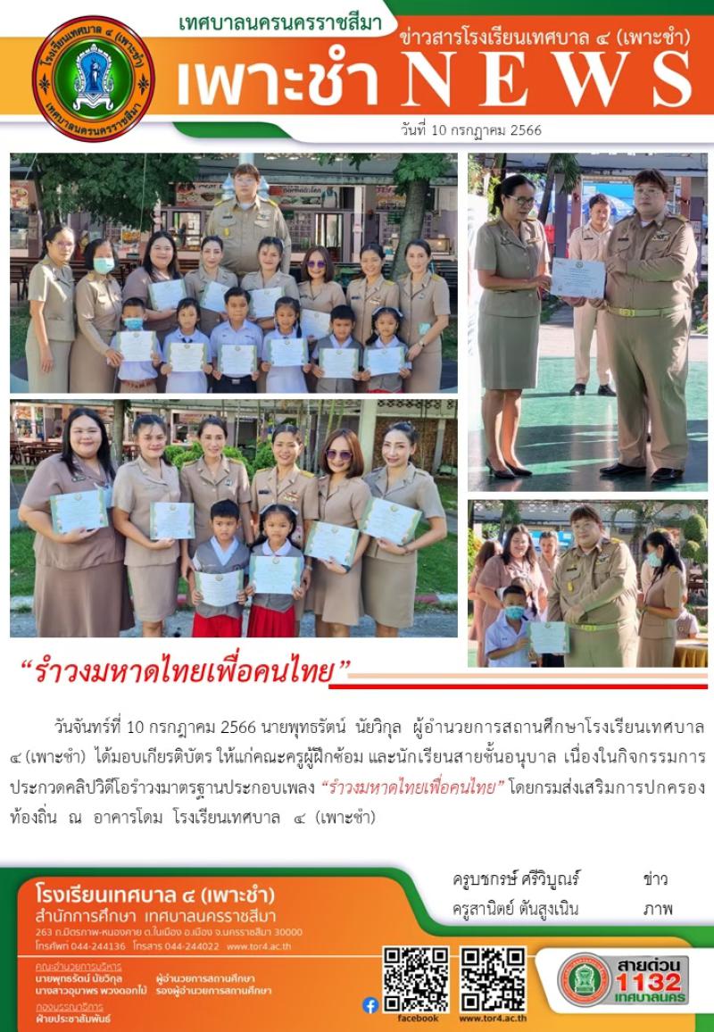 มอบเกียรติบัตร แก่ครูผู้ฝึกซ้อม และ นักเรียนสายชั้นอนุบาล เนื่องในกิจกรรมการประกวดคลิปวิดีโอรำวงมาตร..