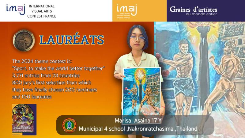 นางสาวเมริสา อาศัยนา ชั้น ม.5/1 โรงเรียนเทศบาล4(เพาะชำ)ได้รับรางวัล ชนะเลิศ ในรายการ Internationa..