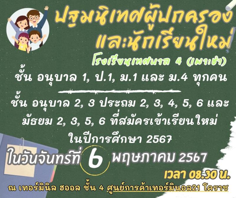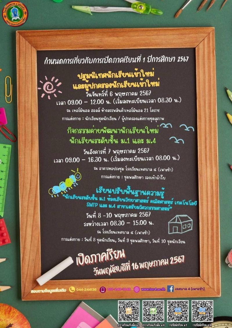 โรงเรียนเทศบาล ๔ (เพาะชำ)ต้อนรับเปิดเทอมใหม่ ภาคเรียนที่ 2 ในวันศุกร์ ที่ 1 พฤศจิกายน 2567