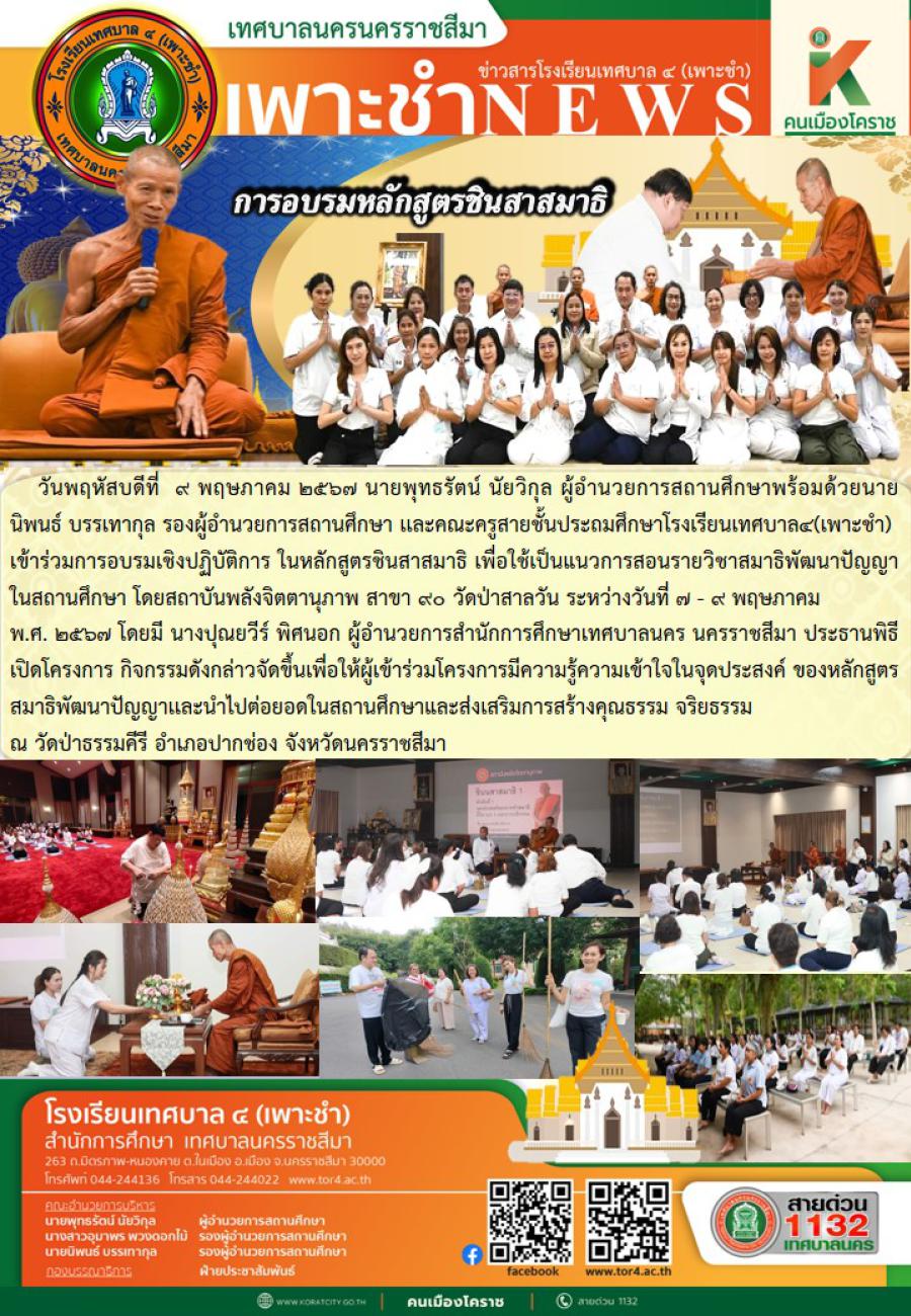ณะครูสายชั้นประถมศึกษาโรงเรียนเทศบาล๔(เพาะชำ)เข้าร่วมการอบรมเชิงปฏิบัติการ ในหลักสูตรชินสาสมาธิ เพื่..