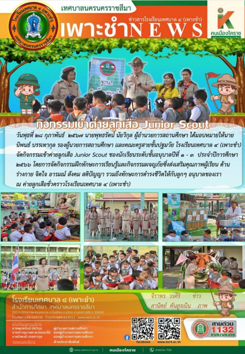 วันพุธที่ ๒๘ กุภาพันธ์ ๒๕๖๗ จัดกิจกรรมเข้าค่ายลูกเสือ Junior Scout ของนักเรียนระดับชั้นอนุบาลปีที่ ..
