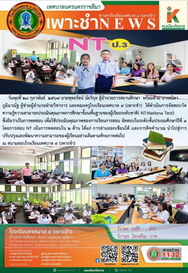 วันเสาร์ที่ ๑๐ ก.พ. ๒๕๖๗ได้จัดการทดสอบทางการศึกษาระดับชาติขั้นพื้นฐาน O-net ณ สนามสอบโรงเรียนเทศบาล๔..