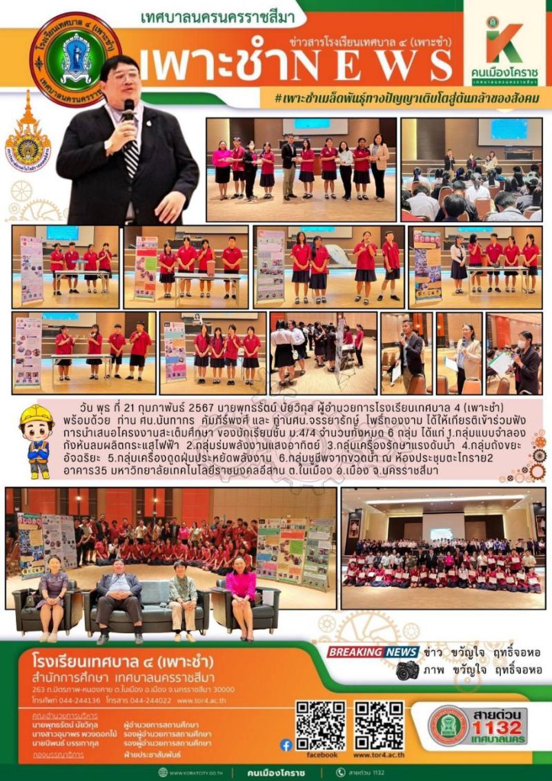 เมื่อวันพุธ ที่ ๒๑ กุมภาพันธ์ ๒๕๖๗ การนำเสนอโครงงานสะเต็มศึกษา ของนักเรียนชั้น ม.๔ ณ ห้องประชุมตะโกร..
