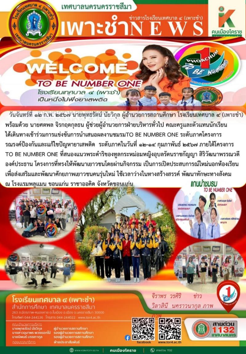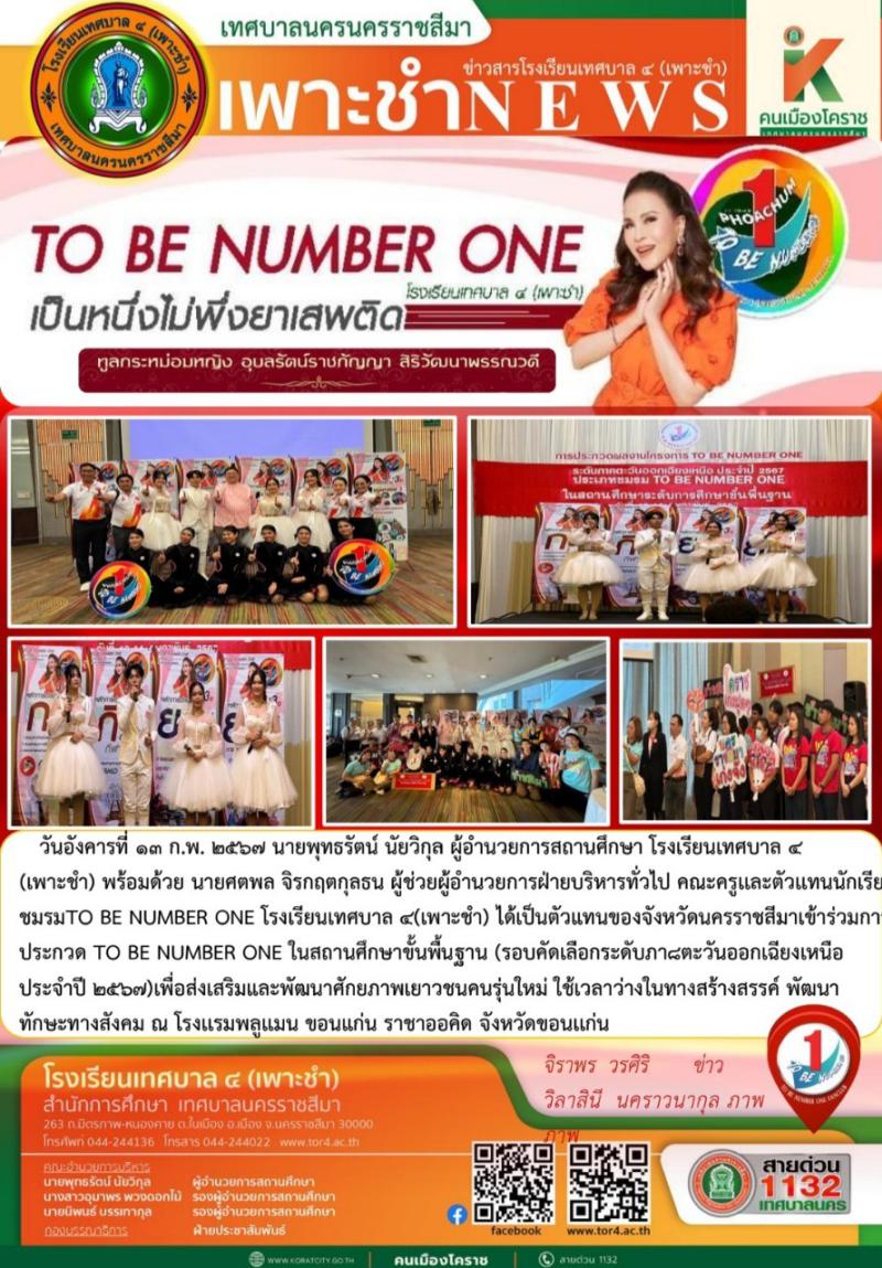 วันอังคารที่ ๑๓ ก.พ. ๒๕๖๗ เข้าร่วมการประกวด TO BE NUMBER ONE ในสถานศึกษาขั้นพื้นฐาน (รอบคัดเลือกระดั..