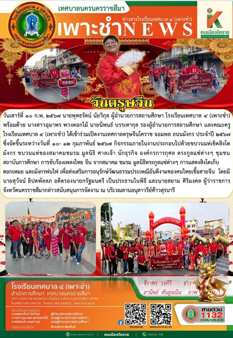 เข้าร่วมเปิดงานเทศกาลตรุษจีนโคราช จอมพล ถนนมังกร ประจำปี ๒๕๖๗ ซึ่งจัดขึ้นระหว่างวันที่ ๑๐- ๑๒ กุมภาพ..