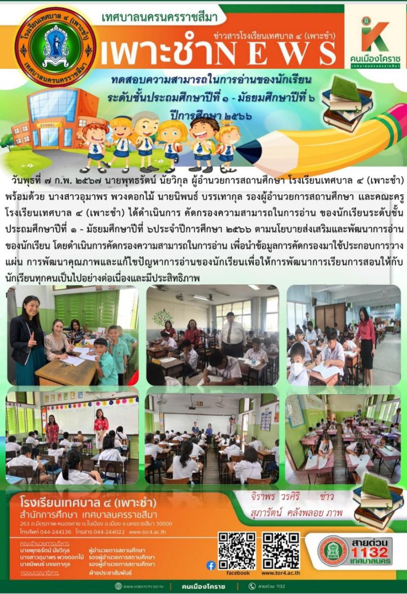 วันพุธที่ ๗ ก.พ. ๒๕๖๗ คัดกรองความสามารถในการอ่าน ของนักเรียนระดับชั้นประถมศึกษาปีที่ ๑ - มัธยมศึกษาป..