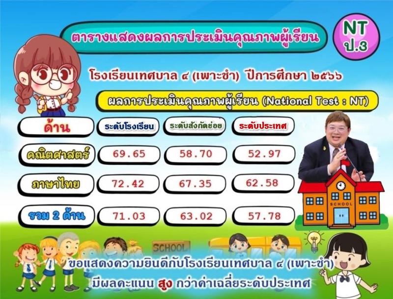 ขอเเสดงความยินดีกับโรงเรียนเทศบาล ๔ (เพาะชำ) มีผลคะเเนนสูงกว่าค่าเฉลี่ยระดับประเทศ