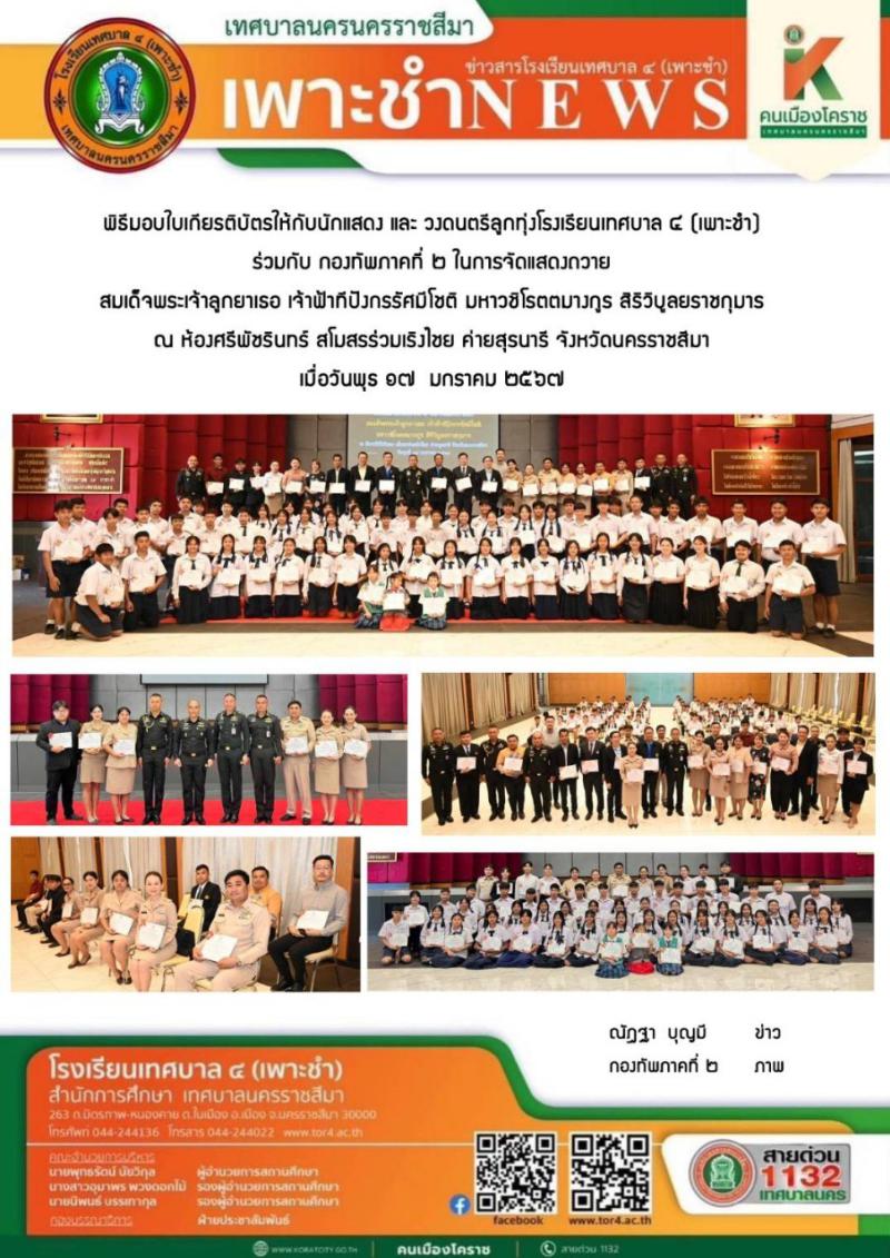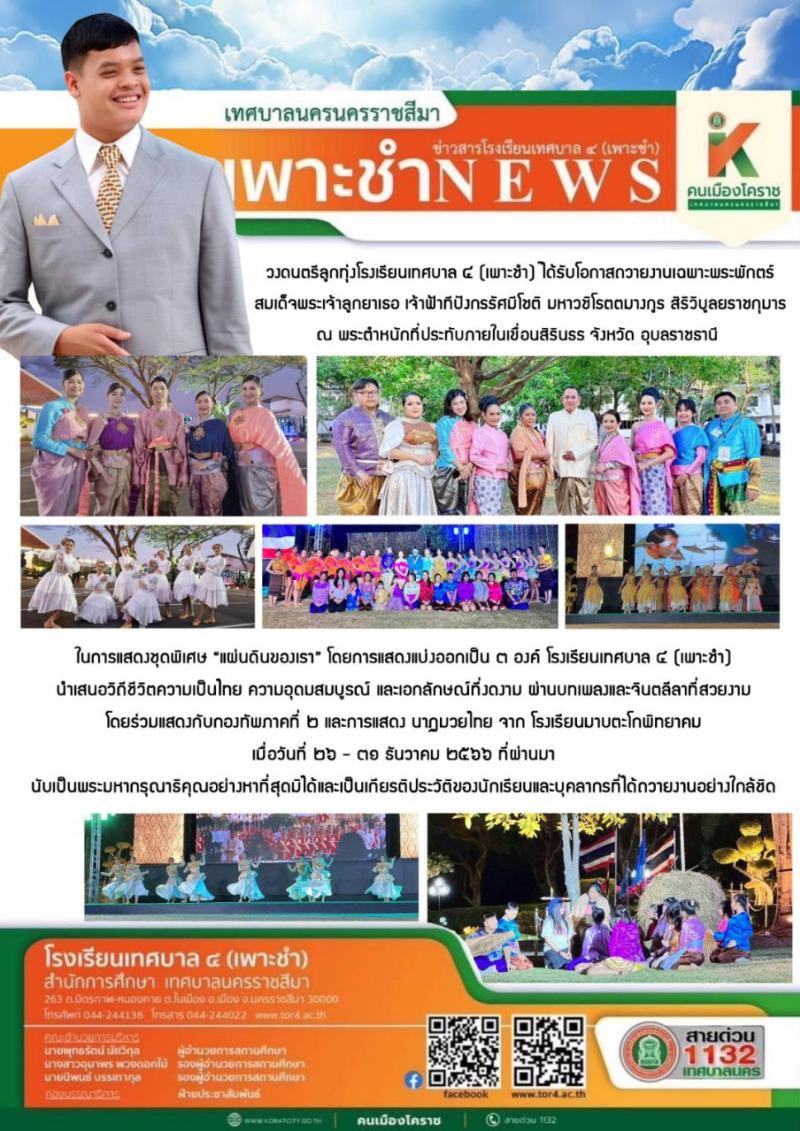 เมื่อวันที่ ๒๖-๓๑ ธันวาคม ๒๕๖๖ วงดนตรีลูกทุ่งโรงเรียนเทศบาล ๔ (เพาะชำ) เเสดงชุดพิเศษ "แผ่นดินของเรา"..