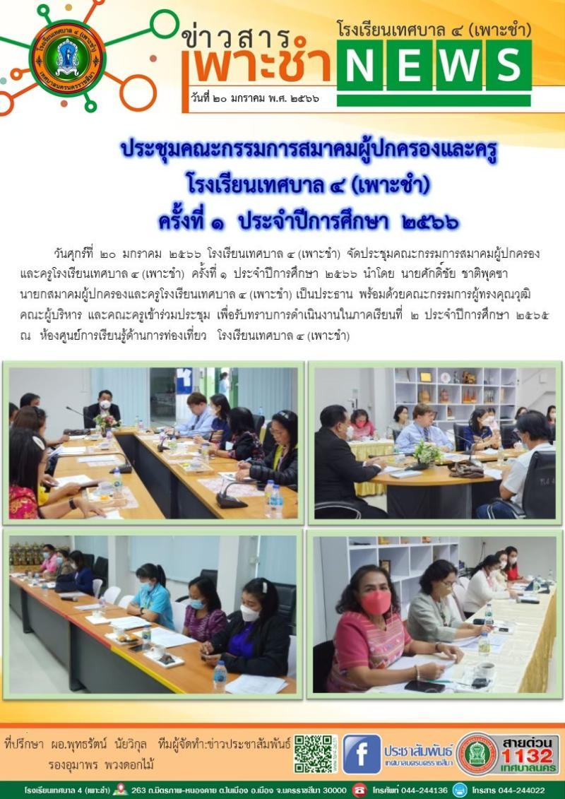 เมื่อวันศุกร์ ๒๐ มกราคม ๒๕๖๖ จัดประชุมคณะกรรมการสมาคมผู้ปกครองเเละครูโรงเรียนเทศบาล ๔ (เพาะชำ) ครั้ง..