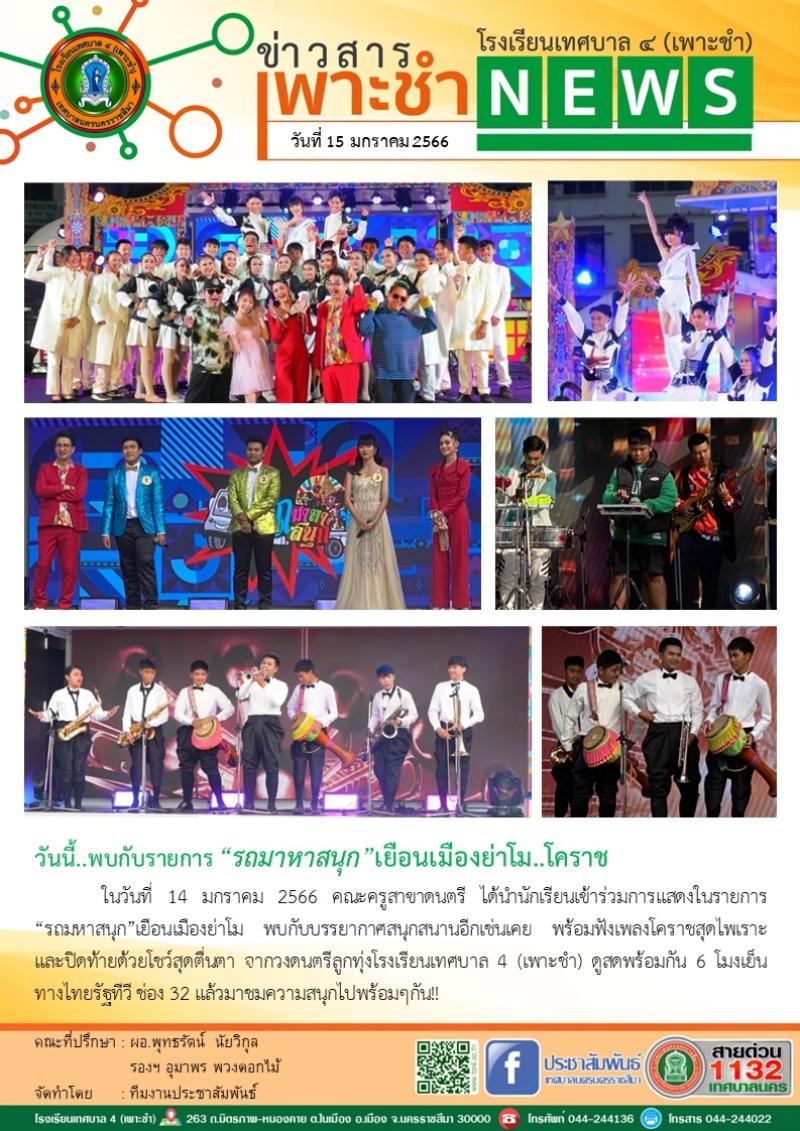 เมื่อวันที่ 14 มกราคม 2566 วงดนตรีลูกทุ่งโรงเรียนเทศบาล ๔ (เพาะชำ) ร่วมเเสดงในรายการ "รถมหาสนุก" เย..