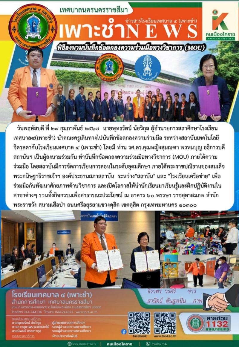 ทำบันทึกข้อตกลงความร่วมมือทางวิชาการ (MOU) ระหว่างสถาบันเทคโนโลยีจิตรลดาเเละโรงเรียนเทศบาล๔(เพาะชำ)